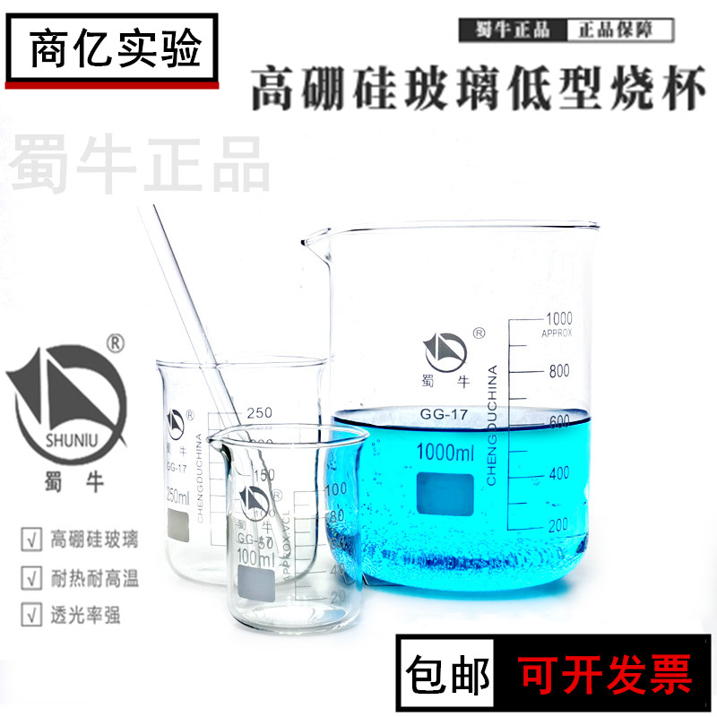 Shuniu glass beaker 25 50 100 250 500 1000ml household high temperature resistant chemical laboratory equipment