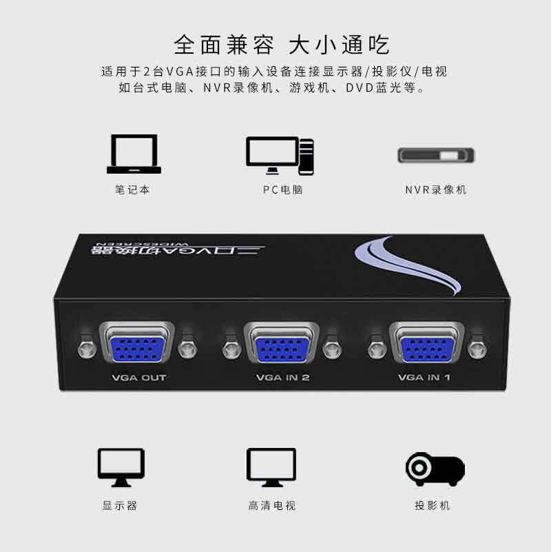 VGA two-in-one-out switcher 2 computer hosts Surveillance video recorder share one monitor screen