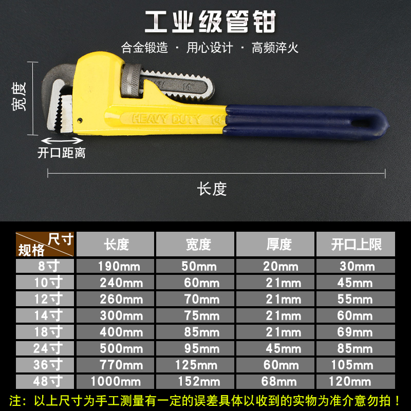Shugong multi-functional heavy-duty pipe wrench quick self-tightening wrench water pipe wrench size active pipe wrench household tools