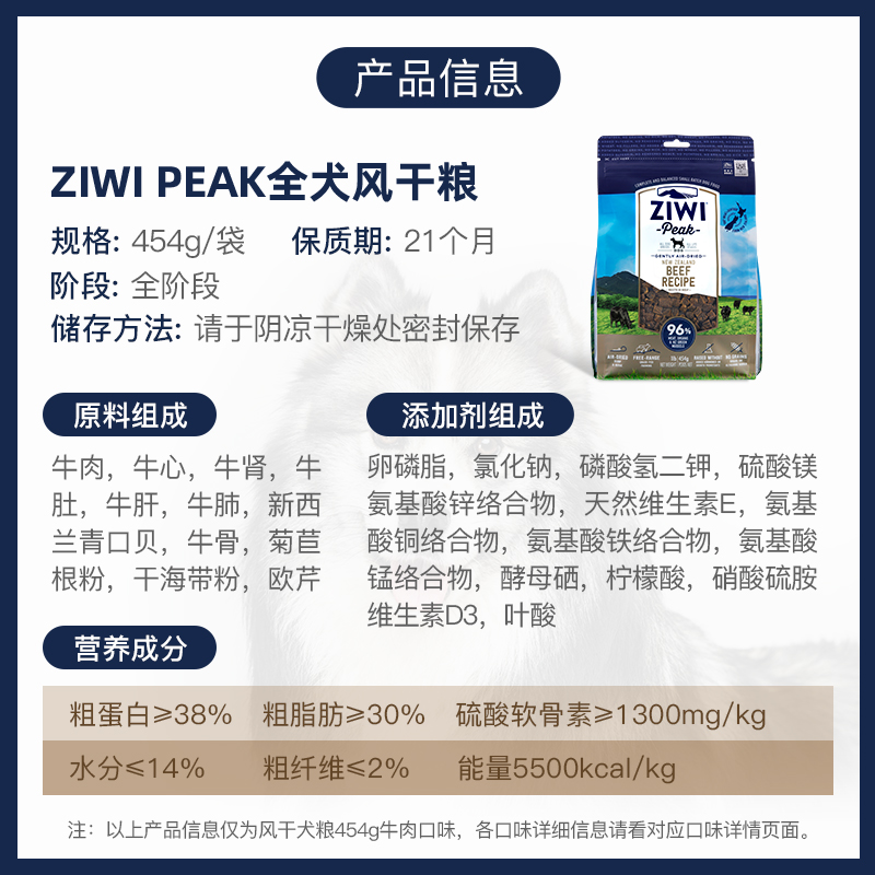 (Ziwi Flagship Store) No Valley Air-dried Bull Meat Taste 454g Nouri Pinnacle Total Stage Dog Staple Food Multi Taste