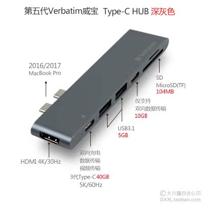 Verbatim Verbatim5 Generation Dual Type-C Apple Augers Macbook Pro UHB Expansion Dock Charge