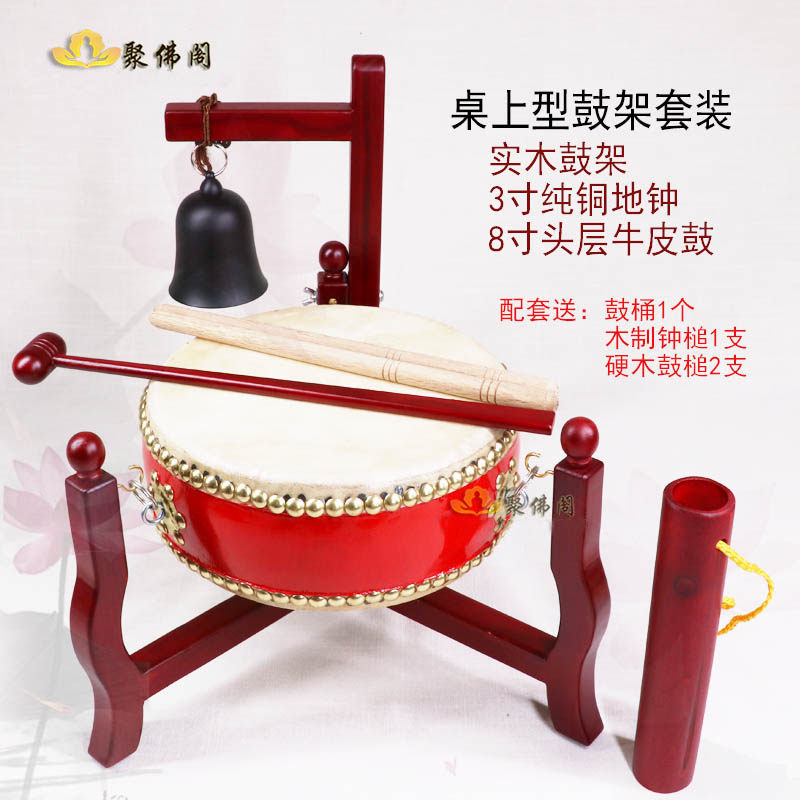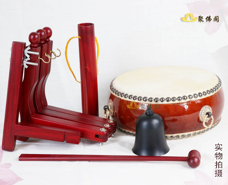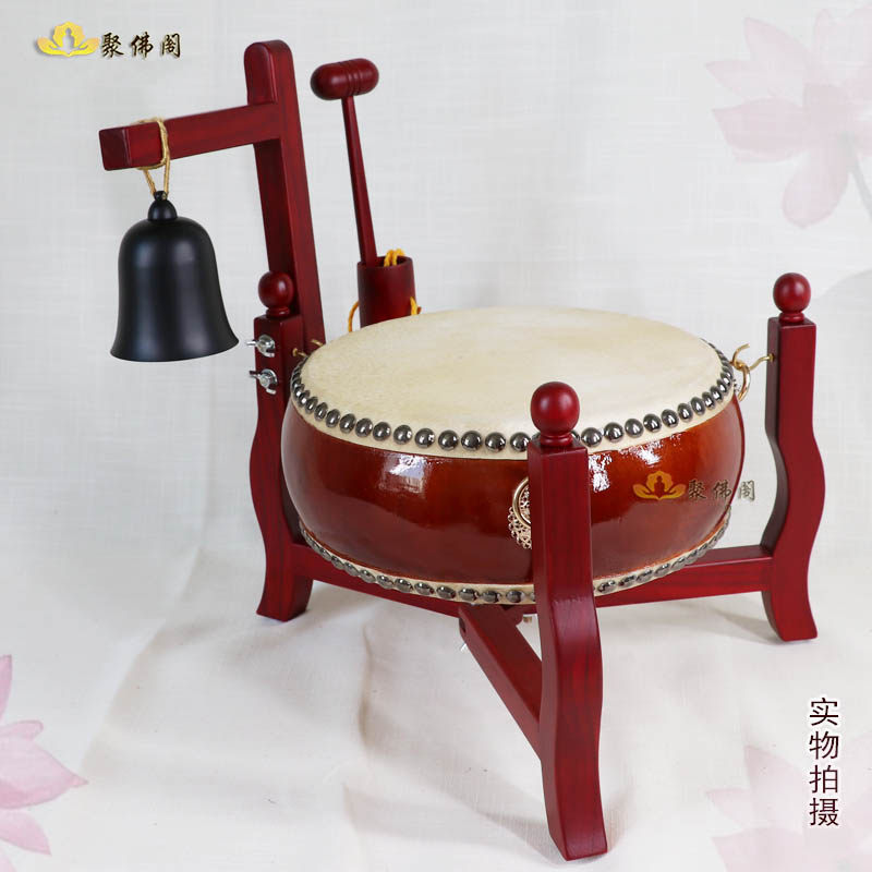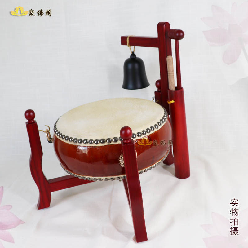 Buddhist Tambourine Flat Drum Ground Bell Tambourine Frame Solid Wood Mahogany Tambourine Flat Drum Triangle Drum Rack Folding Confession Drum Confession Bell