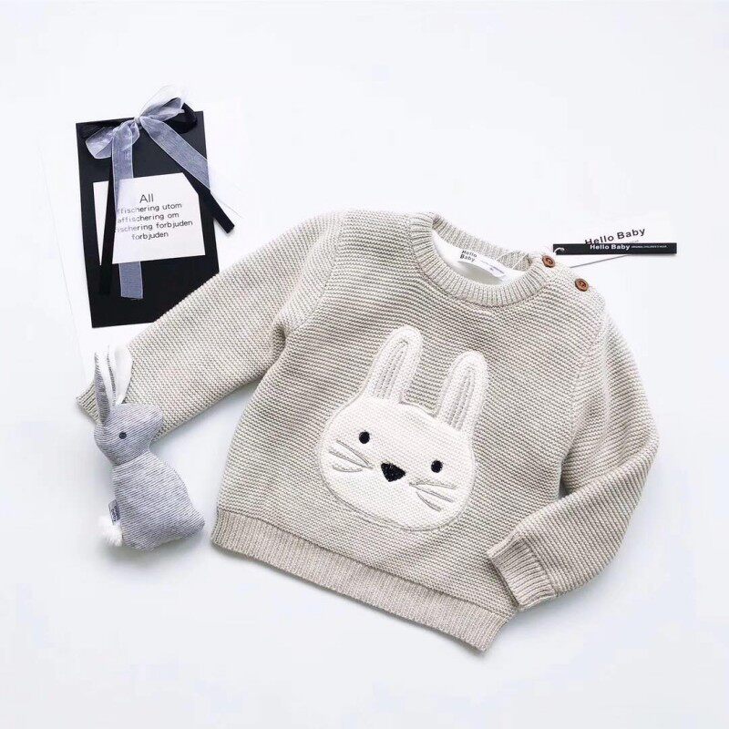 (Joe's) Autumn and Winter New Boys and Girls Bunny Shaped Plush Sweater Children's Shoulder Buckle Thickened Cotton Knitting