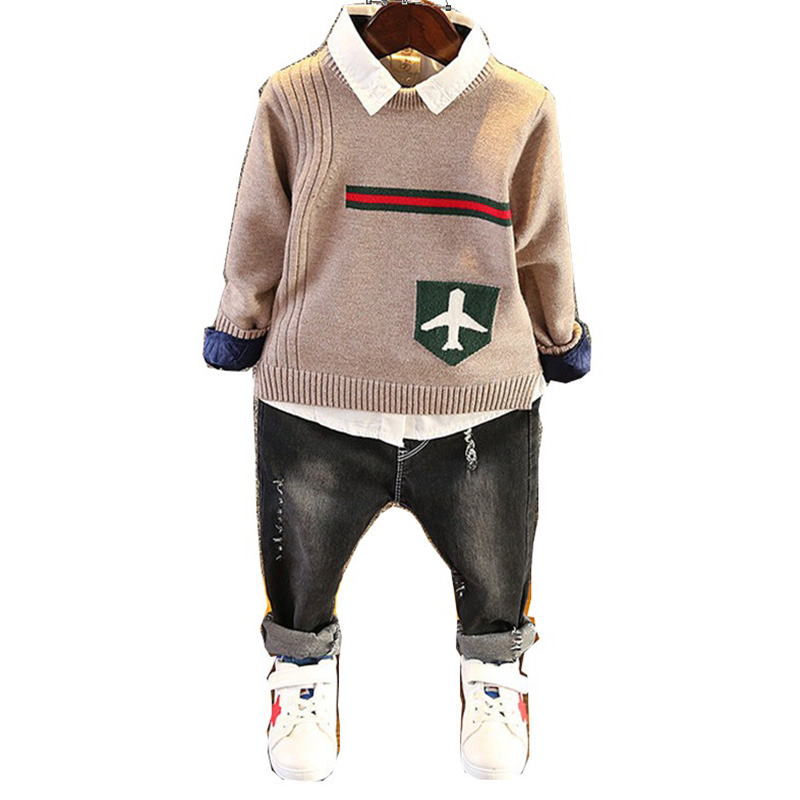 Khaki Sweater Chocolate Sweater 3-Piece Set (Khaki Sweater Shirt Pants) 3-Piece Set (Chocolate Sweater Shirt Pants)