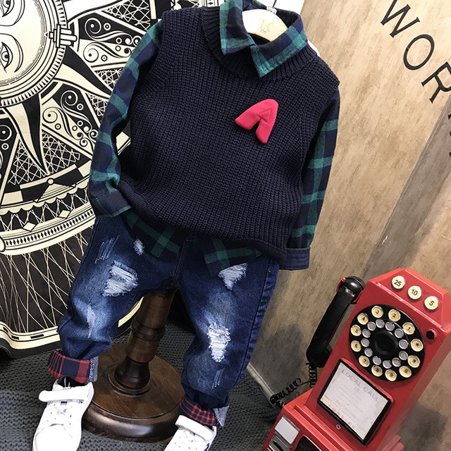 Spring and Autumn Boys Suit 2021 New Children's Handsome 2 Sweater 3 Baby 4 Korean Version 5 Vest 6 Three-piece Suit 7 Years Old
