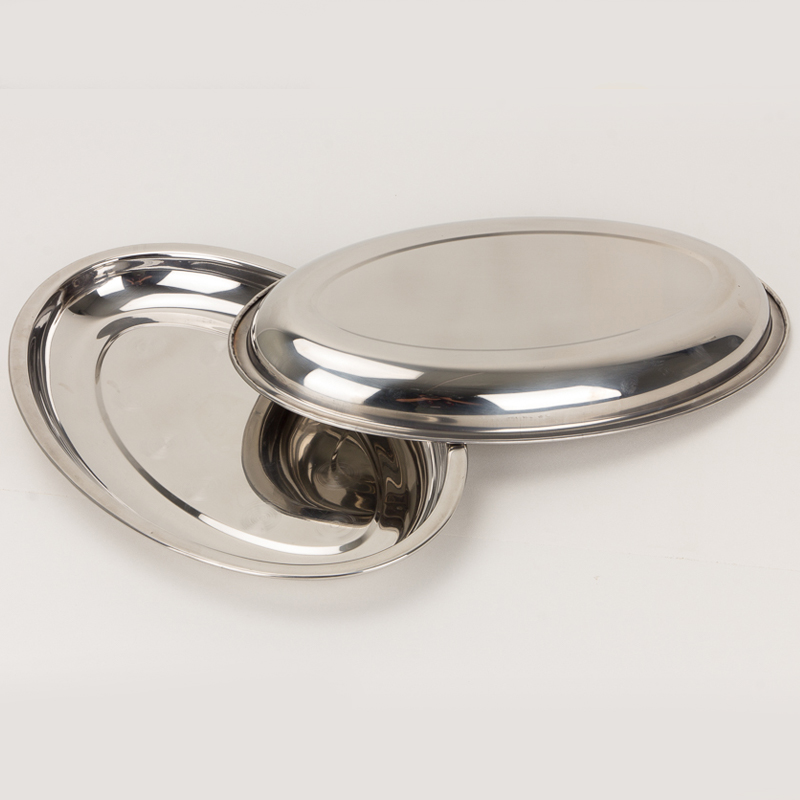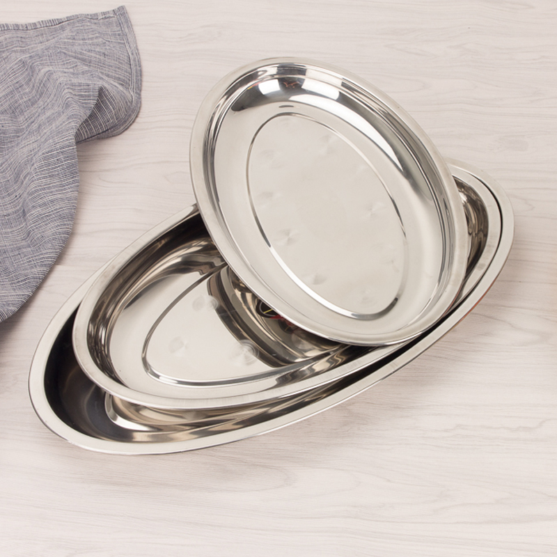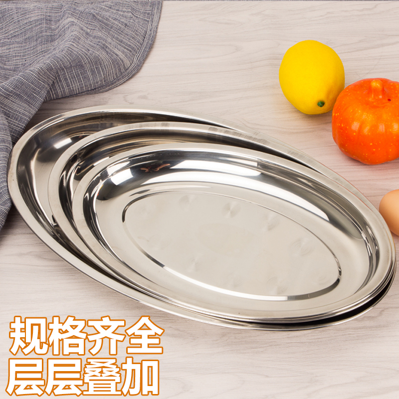 Thickened Stainless Steel Plate Oval plate Home Steamed Fish Pan Egg-shaped Dish Tray Grilled Dish Grill Pan Fish Pan