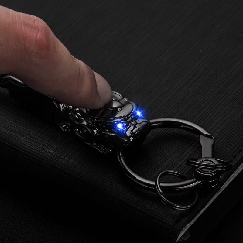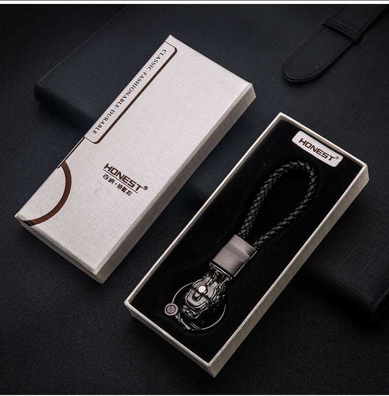 Baicheng Leopard Head Pixiu Metal Keychain High-end Car Key Ornament Braided Leather Rope Men's Creative Gift