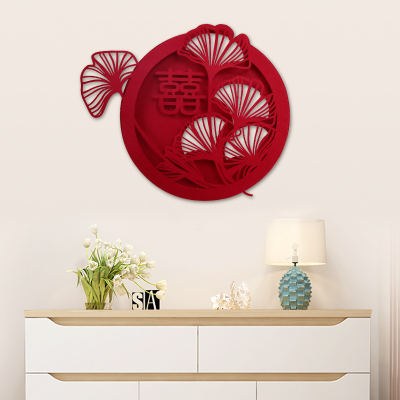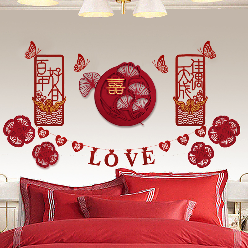 Lotus pond moon color three-dimensional happy word new house creative non-woven hi word wall paste wedding room decoration wedding decoration set