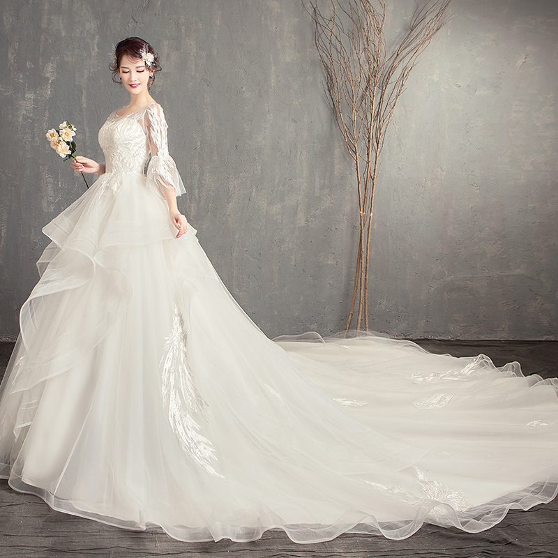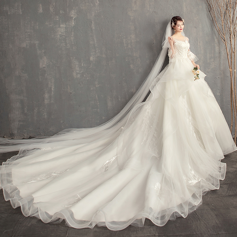 Main Wedding Dress 2022 New Temperament Bride Super Immortal Tail French Simple High Waist 2021 Size Pregnant Woman Light Summer