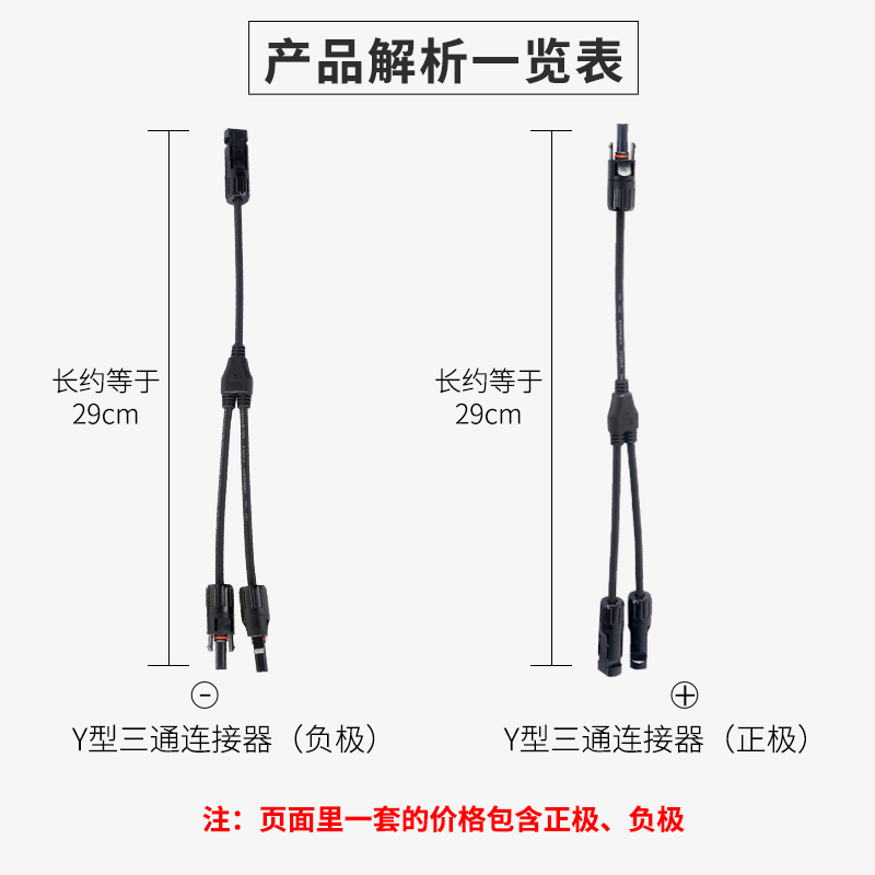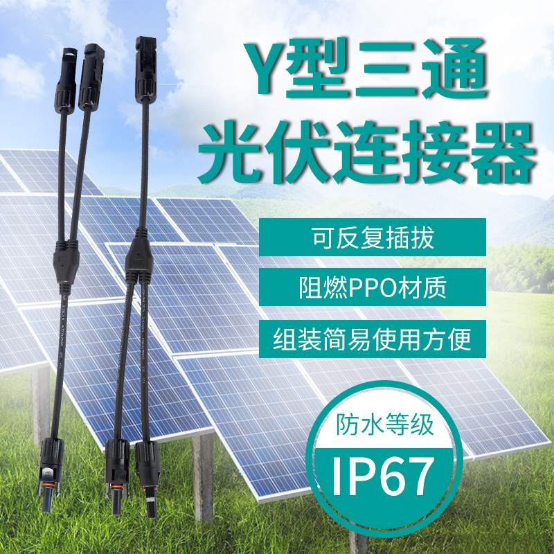 MC4 photovoltaic connector Y-type three-way solar plug component plate parallel joint split joint