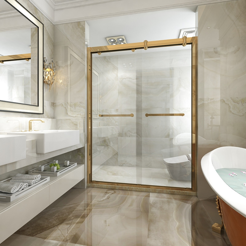 One-line golden shower room custom partition bathroom glass door powder room shower dry and wet separation sliding screen