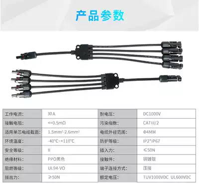MC4 solar photovoltaic connector Y-type five-way connector Battery panel assembly parallel connector one-point four-turn plug