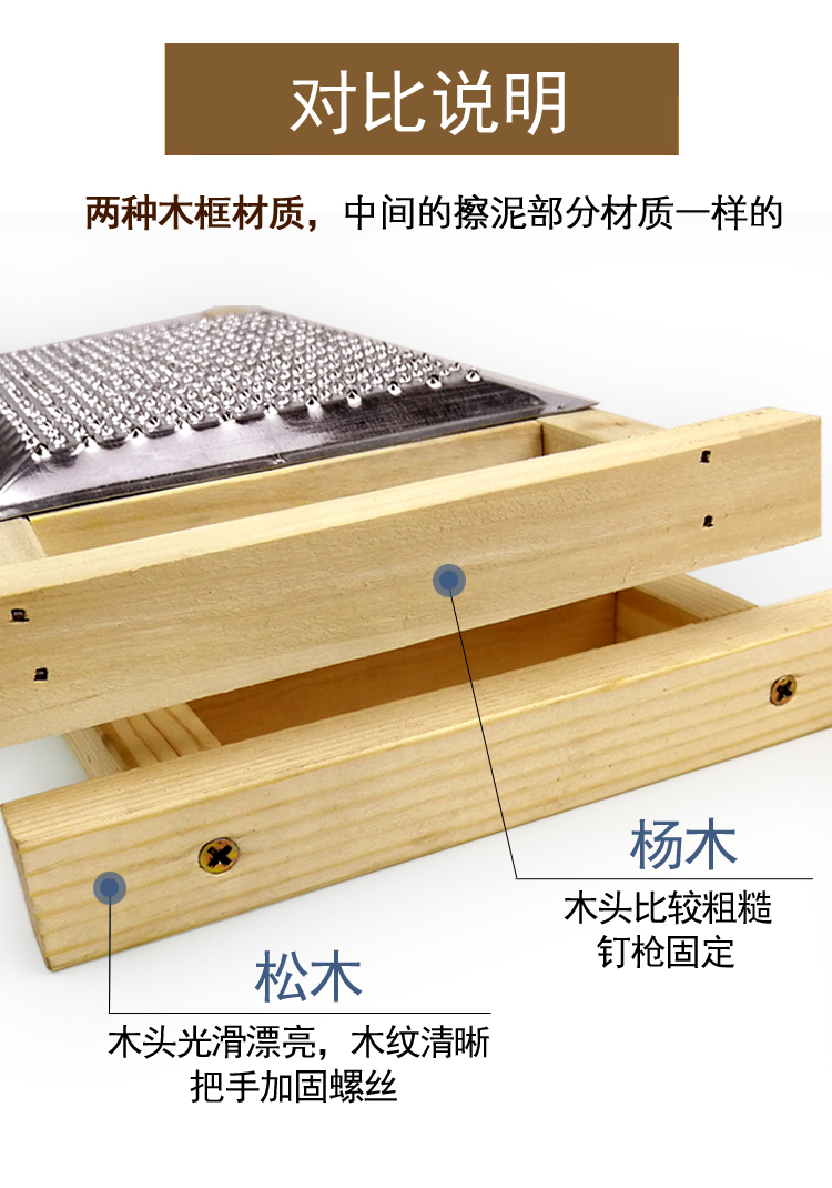 Large-hole stainless steel friction mud wiper Large-hole stainless steel friction mud wiper hand guard 2 pieces of cage cloth all stainless steel friction mud wiper all stainless steel steel friction mud wiper hand guard 2 pieces of cage cloth (wood frame stainless steel) grinding mud hand guard