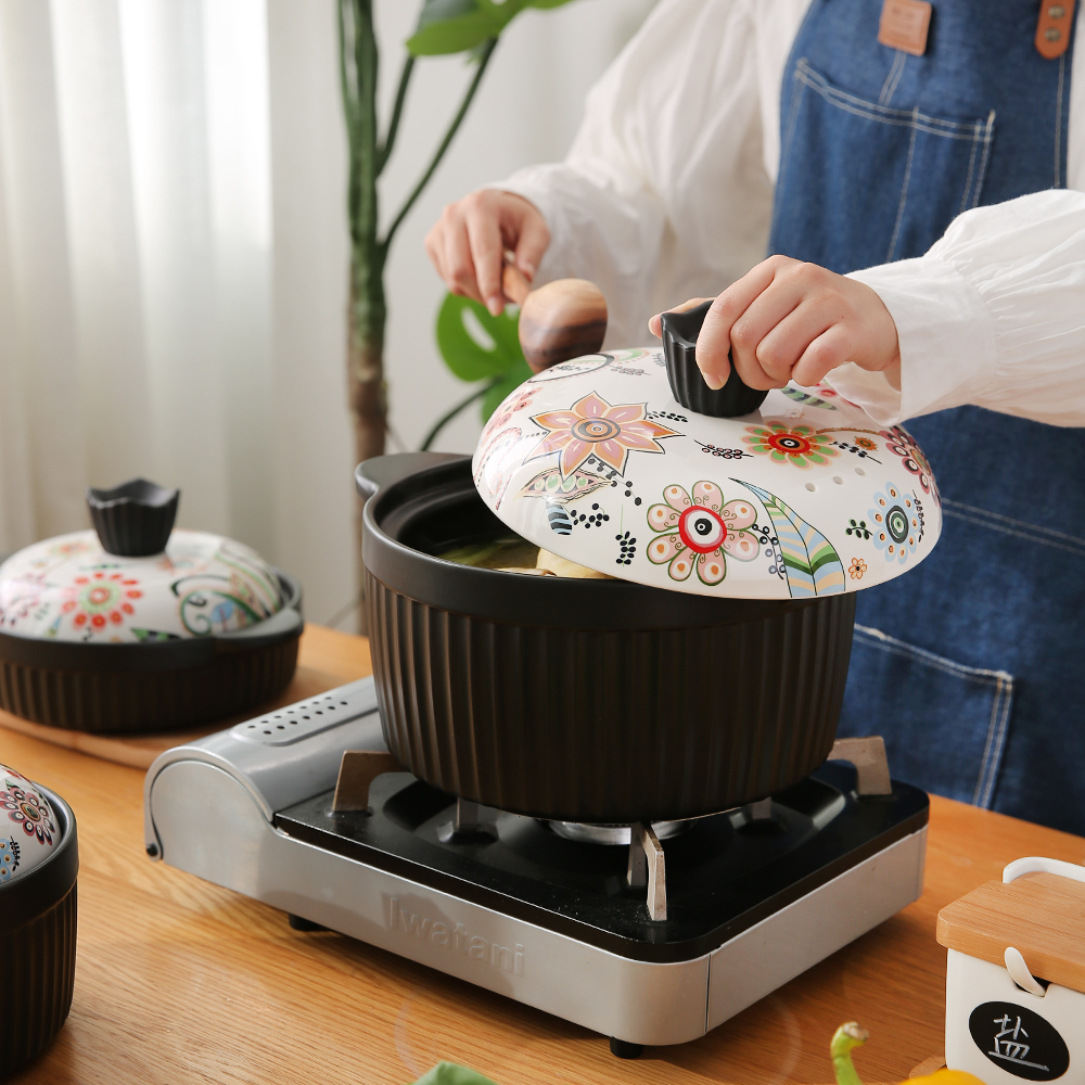 Kawashimaya Japanese painted ceramic casserole stew pot Soup Household gas open flame Large capacity king size stew pot
