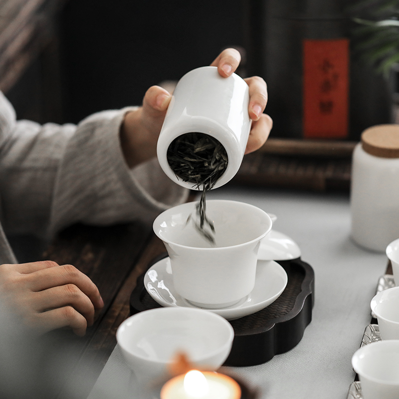 Dehua jade porcelain tea pot ceramic small storage wooden pot sealed Jianbai porcelain pot storage tea pot pure color simple tea box