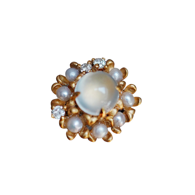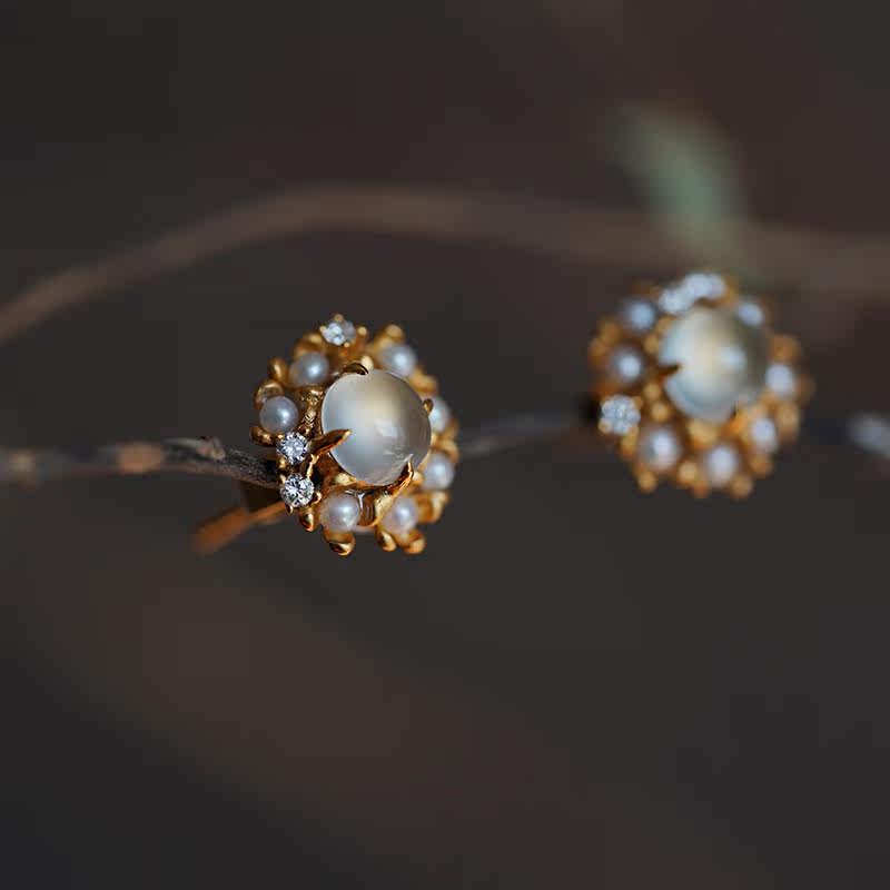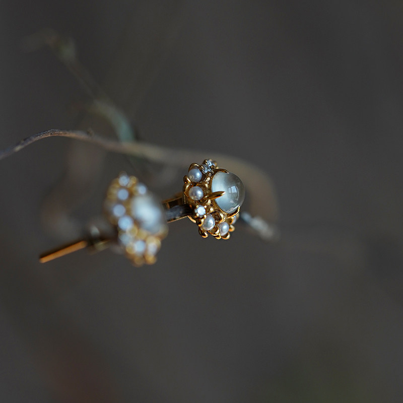 Good Art) Love Baroque 18K Gold Inlaid Jade Stud Earrings Emerald Pearl Diamond Earrings Earrings Female