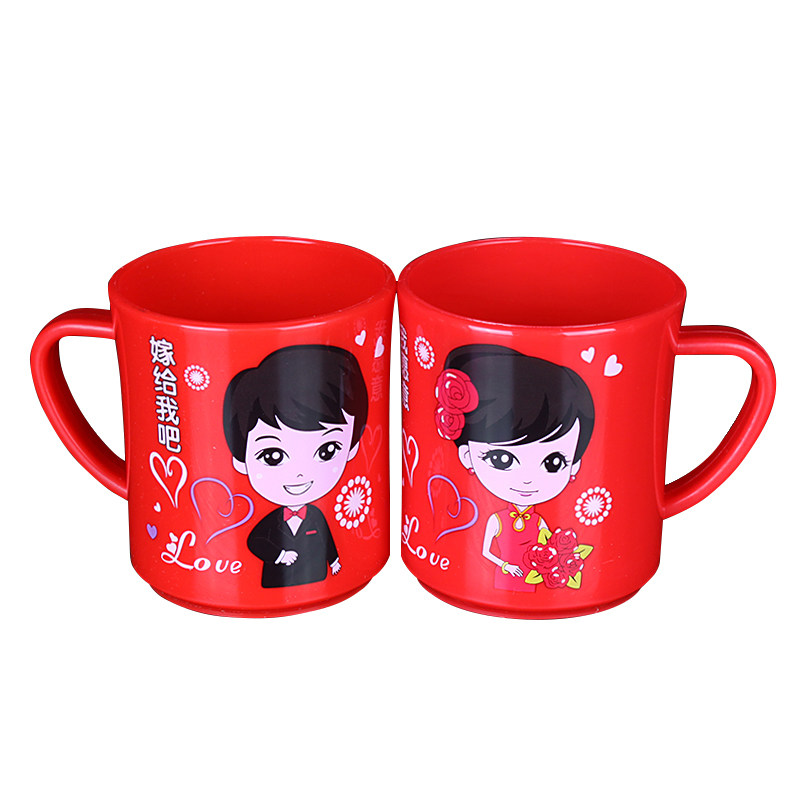 Wedding supplies set, couple mouthwash cups for newlyweds, a pair of plastic toothbrush cups, tooth tanks, red