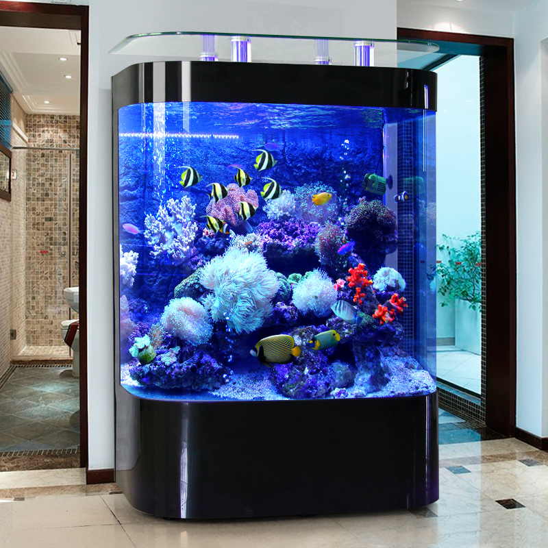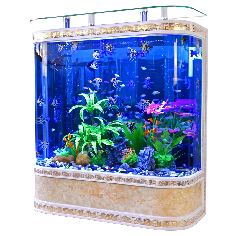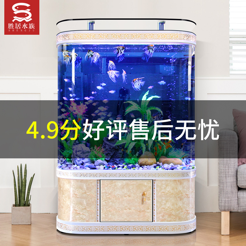 Cylindrical goldfish tank aquarium living room floor against the wall ecological glass large circular household integration without changing water