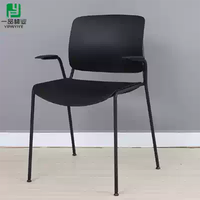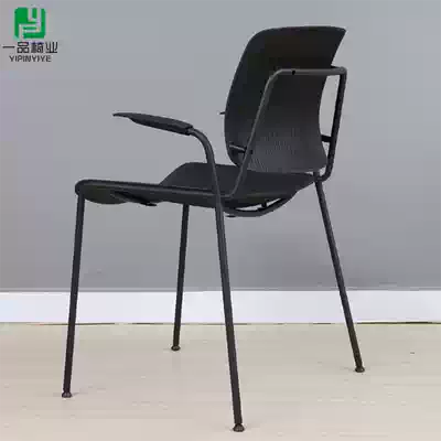 Plastic steel black training chair four-legged office chair Plastic armrest conference chair Simple handle design negotiation discussion chair
