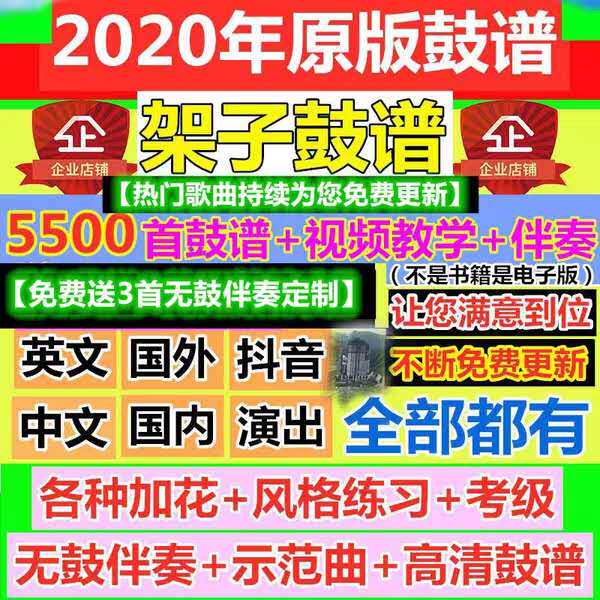 3000 first 2020 more than 100 shake-up pop song rack subdrum 5500 first without drum accompaniment customized ten thousand first drum spectrum set dynamic music score game software continuous updating of film courtwork