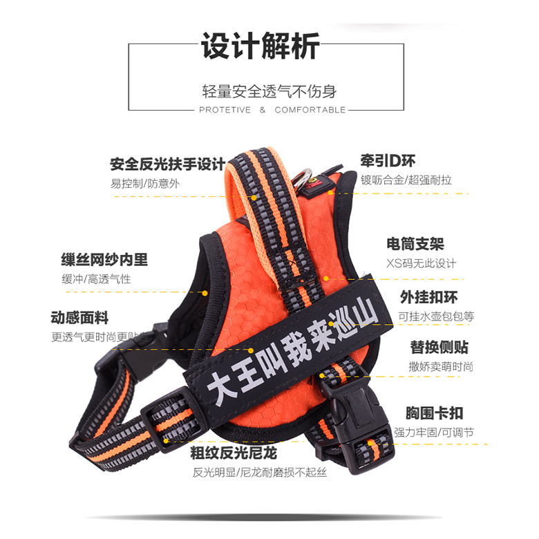Orange reflective K9 single chest back send black reflective K9 single chest back send green reflective K9 single chest back send Sky Blue Reflective K9 single chest back send word Orange send