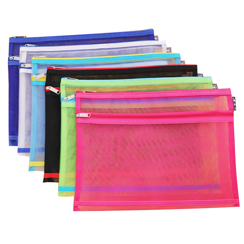 A4 Laced File Bag Student Double cashier bag transparent mesh yarn textbook bag classification stationery homework bag kit