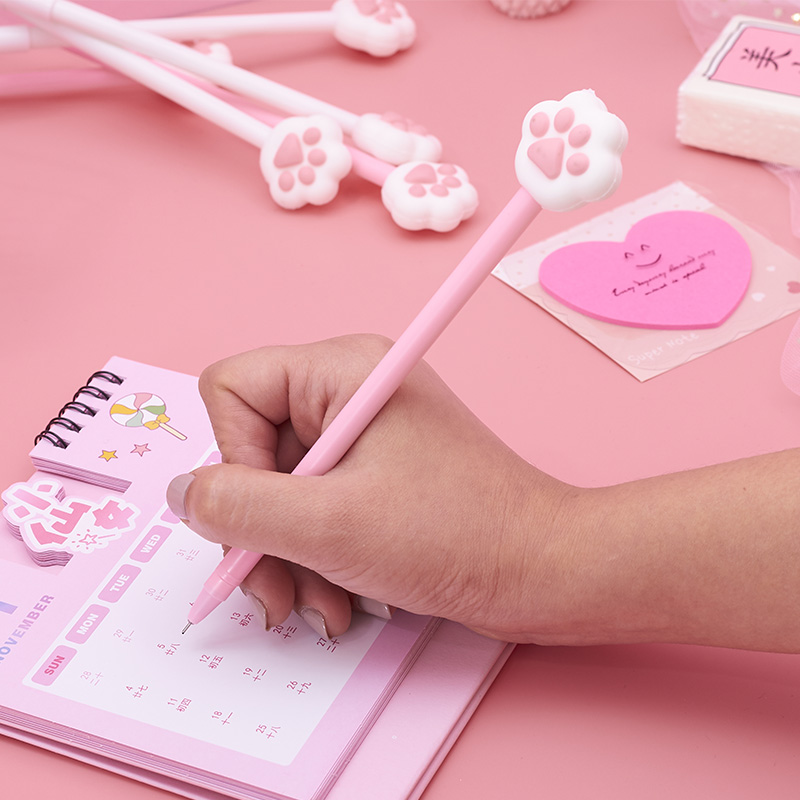 Korean soft girl pink cat claw shape cute neutral pen girl heart pink tender small fresh black signature pen water-based pen