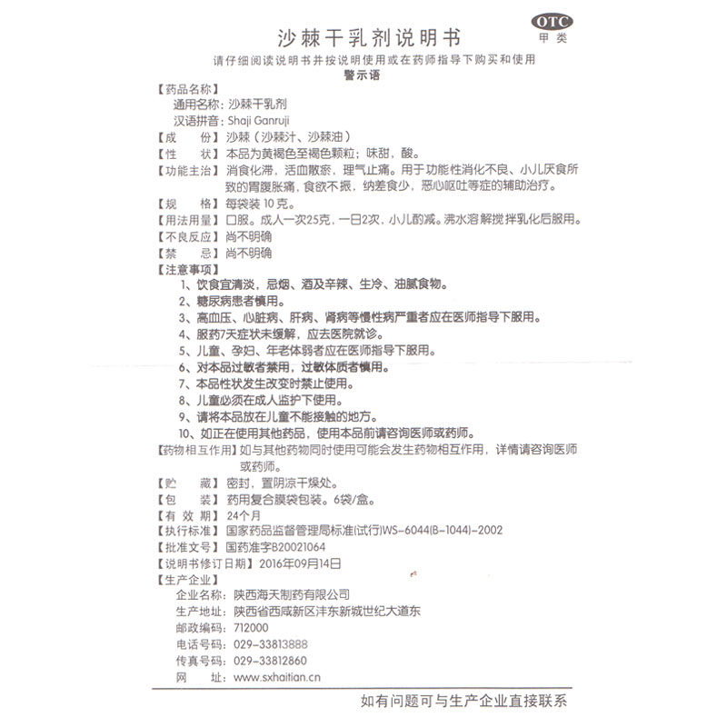 Haitian Seabuckthorn Dry Emulsion 10g*6 bags for children with indigestion and anorexia