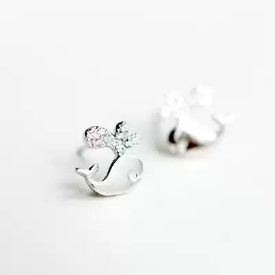 925 silver simple and small whale female earless pierced ear clip earrings High sense niche tea U-shaped fish mouth mosquito coil plate