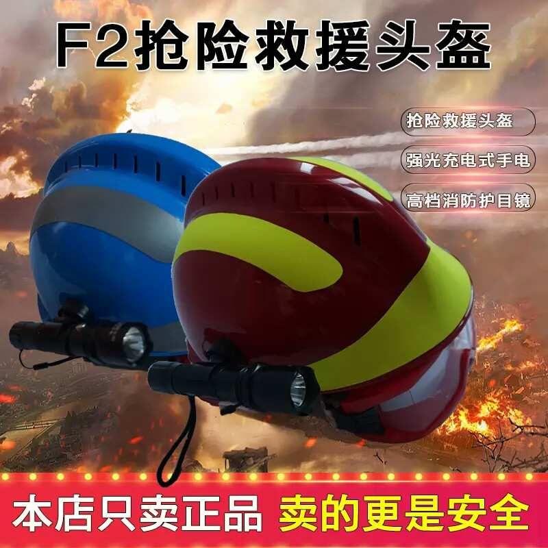 F2 emergency rescue helmet firefighter protection blue sky rescue fire helmet engineering with light internal cotton safety helmet