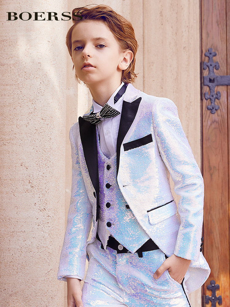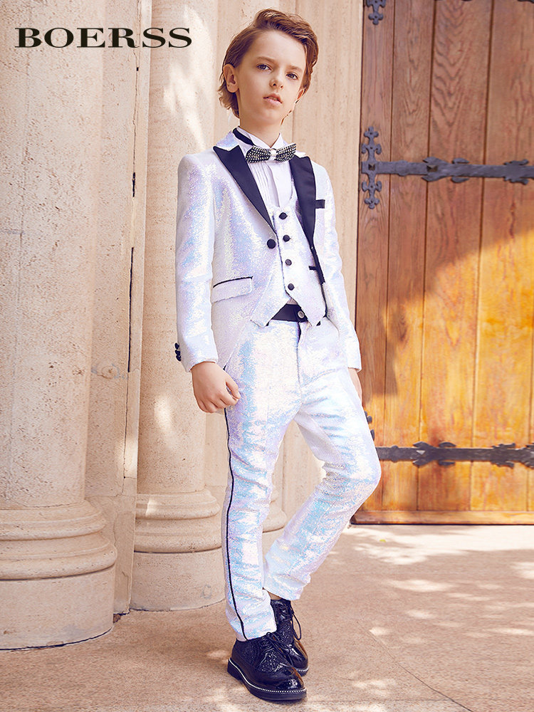 BOERSS Boys Suit Tuxedo Children's Small Suit Men's Light Luxury Dress Performance Costume Catwalk Flower Girl Dress Autumn