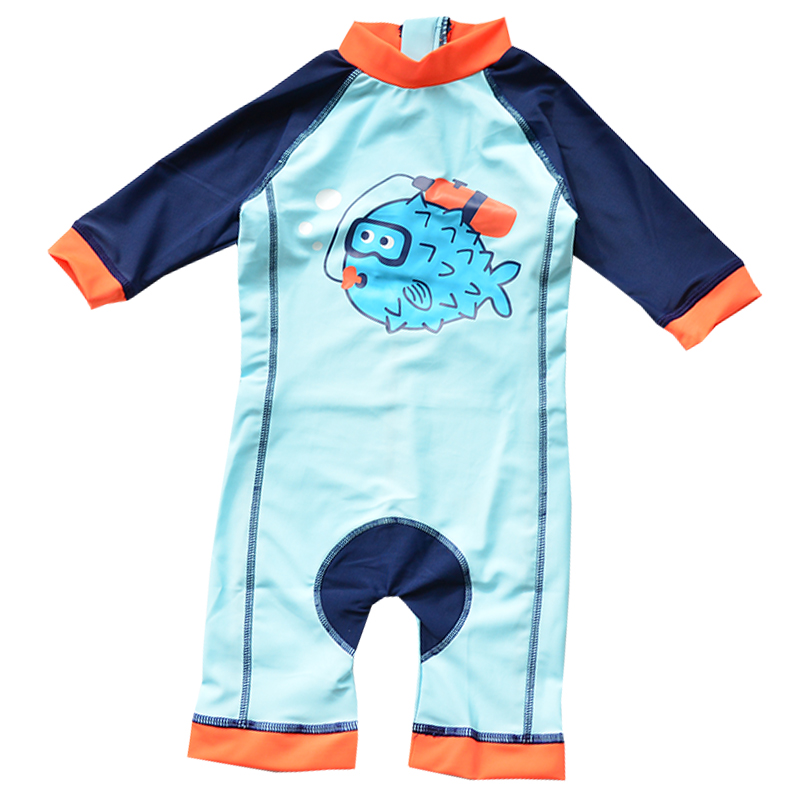 Children's swimsuit boy with sun cartoon kid long sleeve boy cute fish baby swimsuit