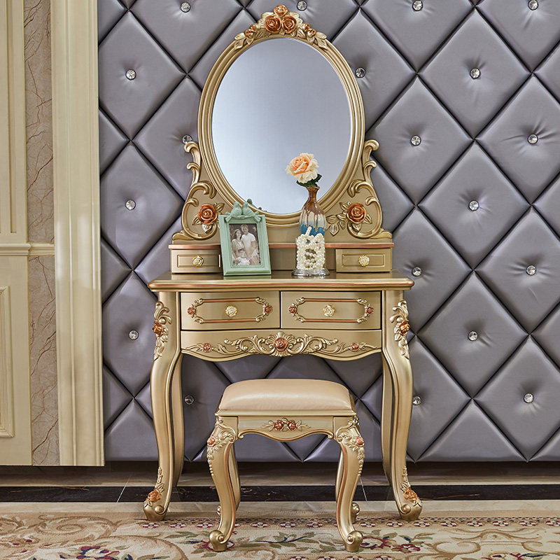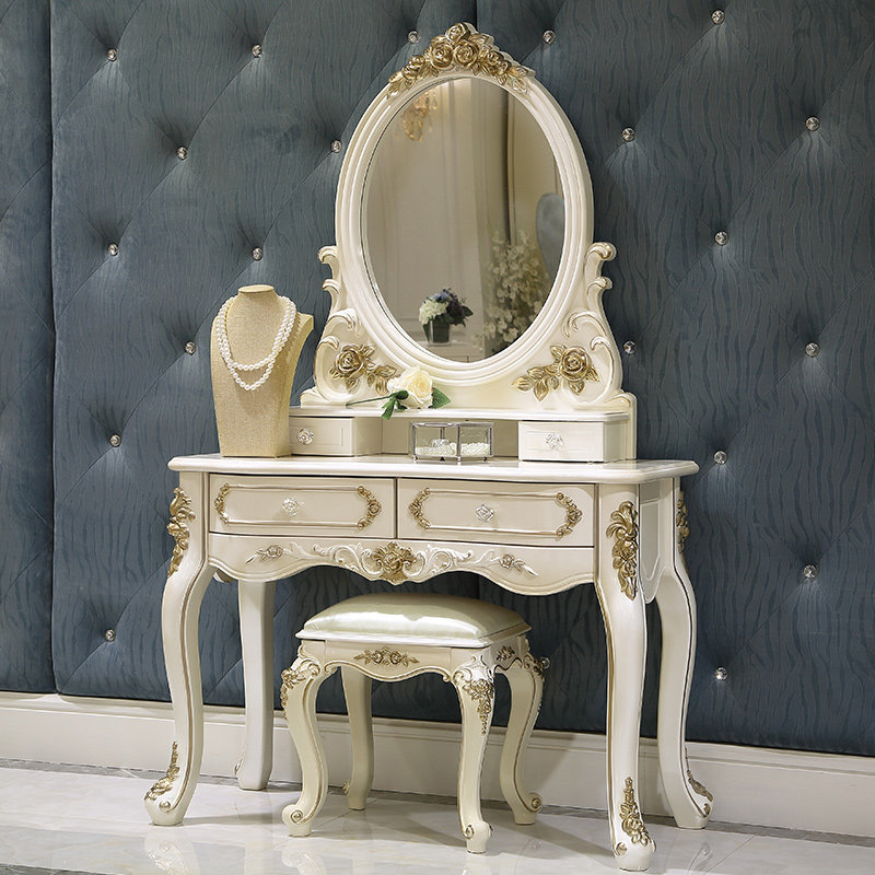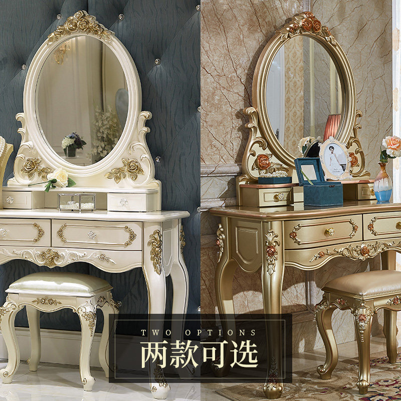 Jiastu European dressing table Bedroom small household dressing table Princess dressing table French solid wood dressing cabinet