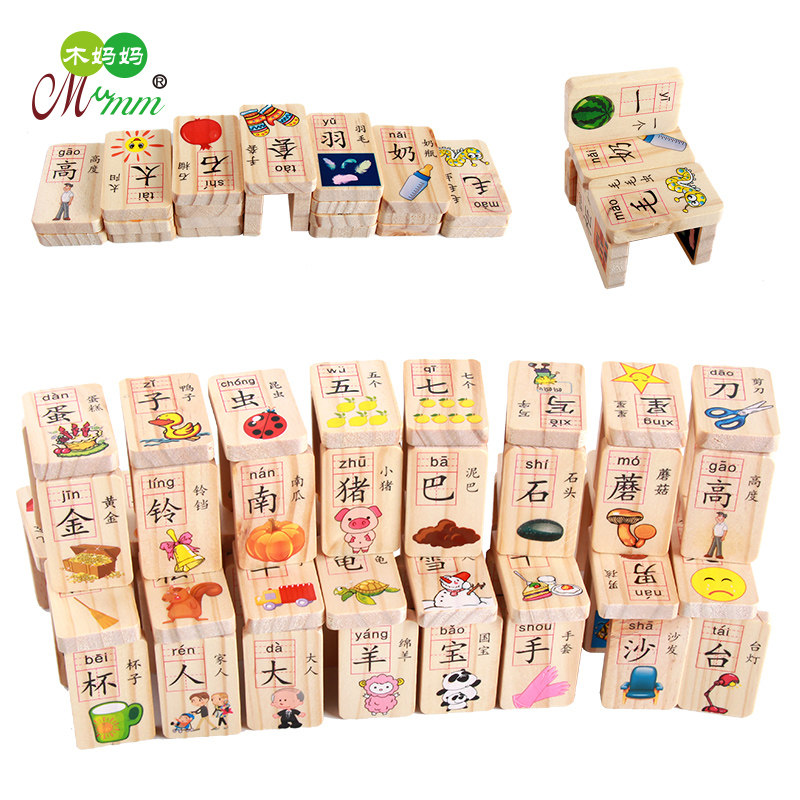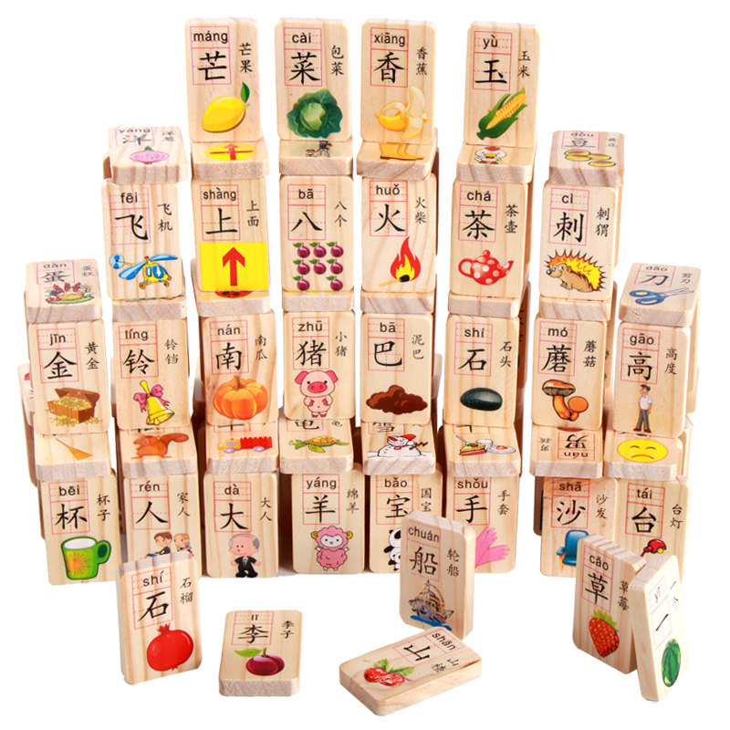 Double-sided rounded Chinese character domino Double-sided digital Chinese character domino Double-sided fruit animal domino