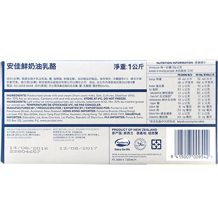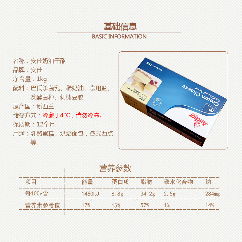 Anjia Cream Cheese Cheese 1KG Original New Zealand Imported Cheese Mu Si Cake Baking Ingredients