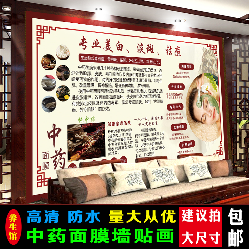 Beauty salon skin management Pure Chinese medicine Mask Advertising Plots for Spot Whitening Whitening Intro Knowledge Pharmacological Action Poster Painting