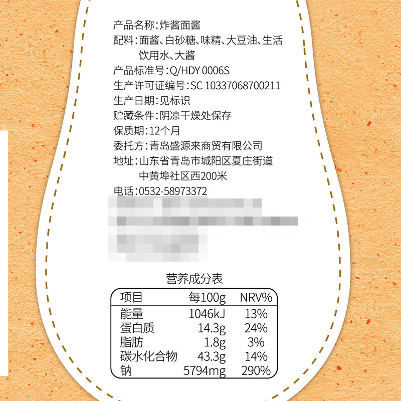 Pasta Sauce White Sugar MSG Soybean Oil Drinking Water Big Sauce