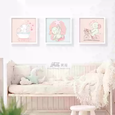 ins cartoon cute cat elephant bear super cute children's room decoration painting baby room bedroom hanging painting animal mural