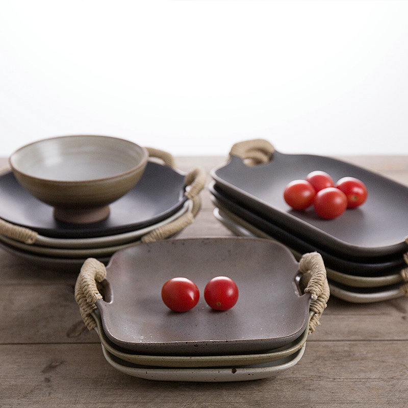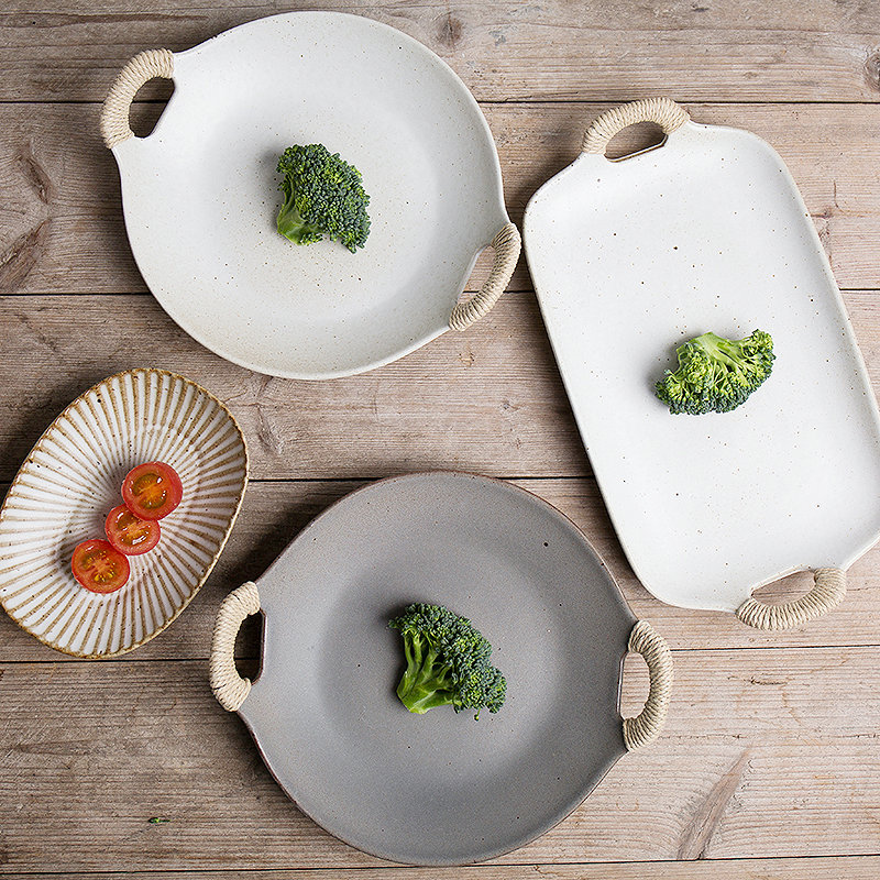 Day style doing old coarse pottery dishes Jingdezhen Twin Ear Hemp Rope Shallow Pan Steak Tray Cuisine Plate ceramic Sashimi Fish tray