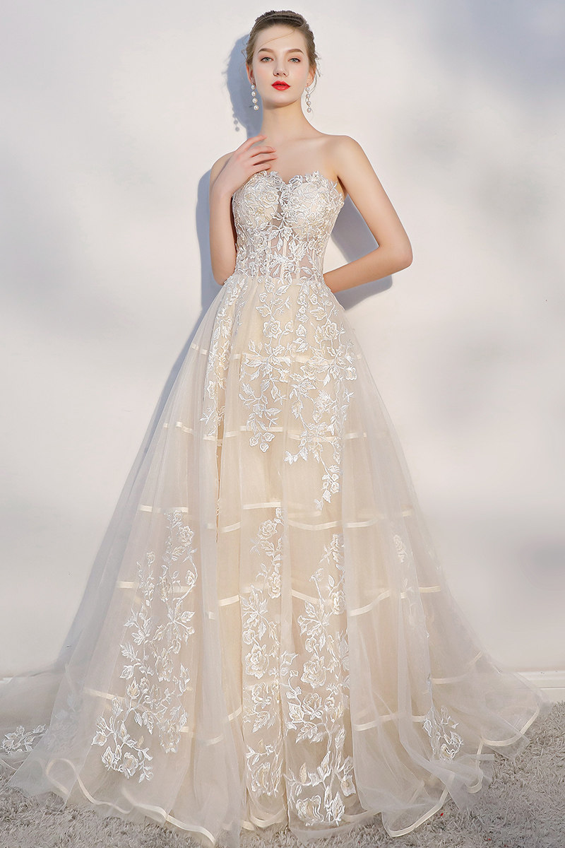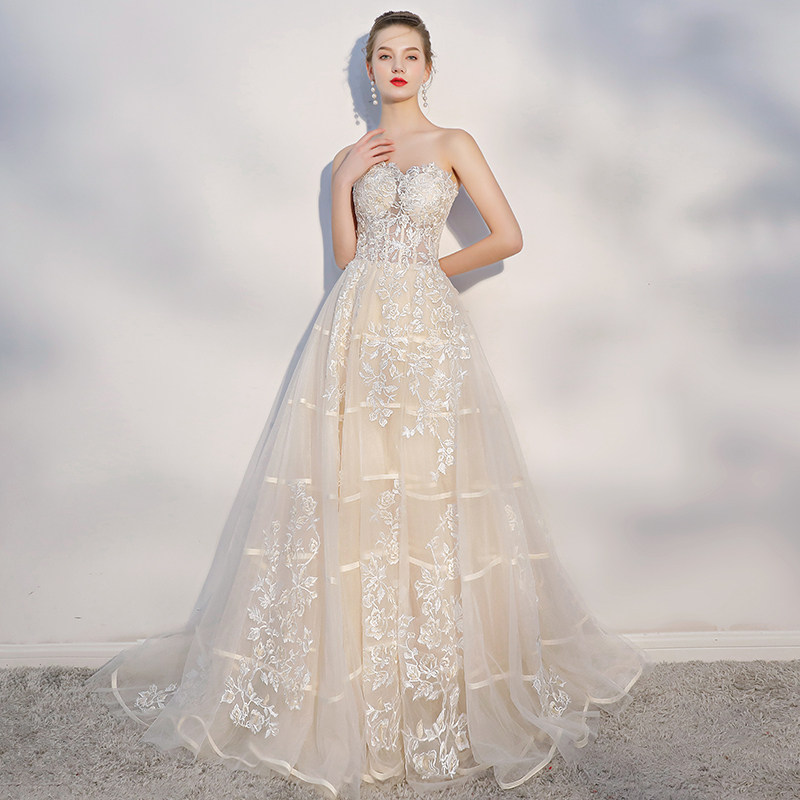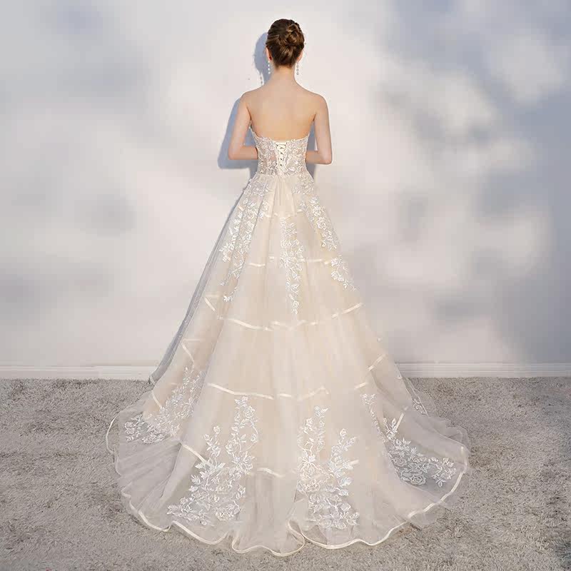 Dream champagne bride go out gauze tube top is thin trailing lace brigade photo light wedding dress photo studio
