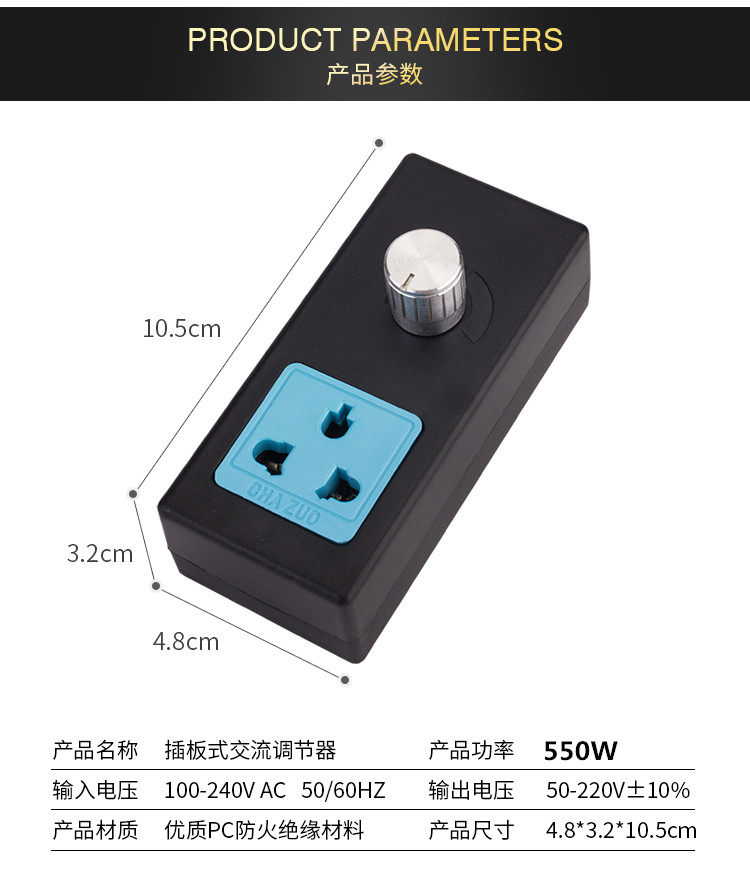 Single phase 220V AC motor governor 550W fan fan speed stepless variable speed switch socket converter