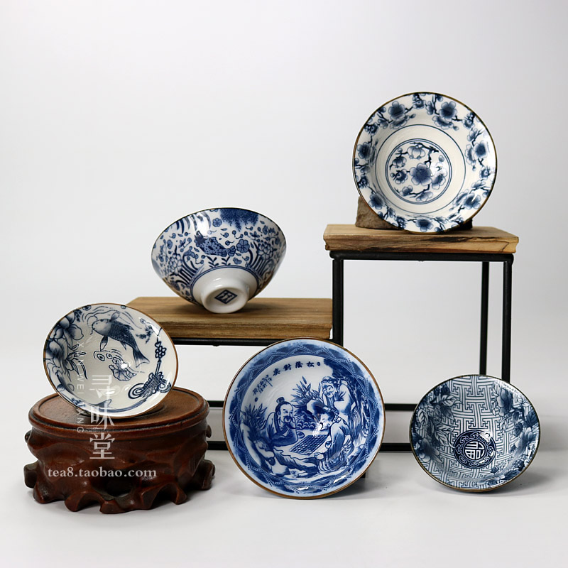 Min Kilo Wind Green Flower Cups | Retro Cupola Cup Tasting Cups of Ming and Qing Qing Flowers Porcelain small tea Imitation Ancient Home Tea Set