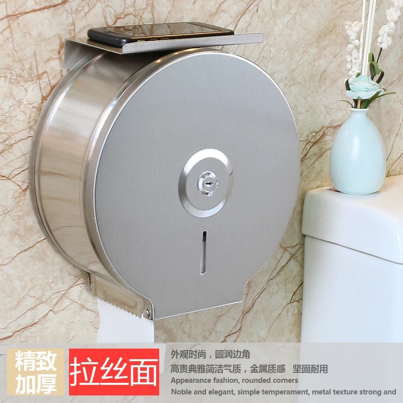 Stainless steel large roll paper box wall-mounted punch-free hotel public toilet bathroom large plate paper towel holder toilet paper holder