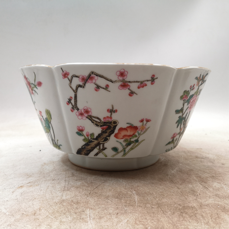 Qing Yongzheng paste art master hand - painted flowers in six - prism bowl antique collection pieces