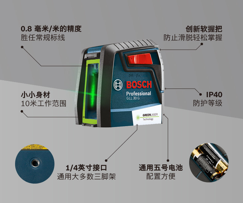Bosch green light level GLL 30 G laser marking instrument cast line outdoor and indoor leveling line