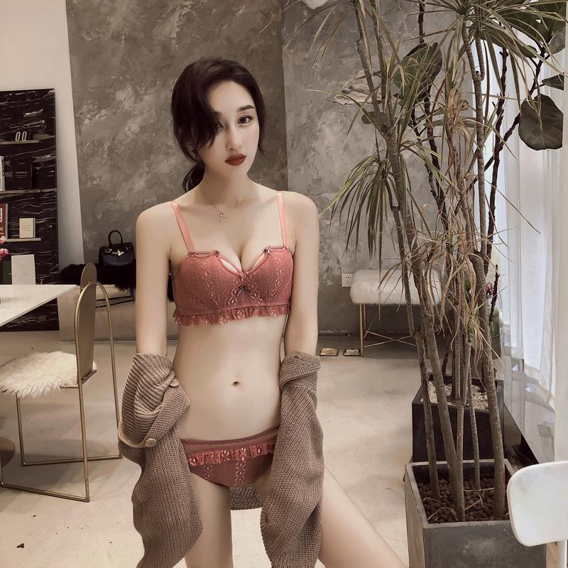 Japanese lingerie suit women gather without steel ring bra lace sexy no-mark thickened side collection of breast milk on the side