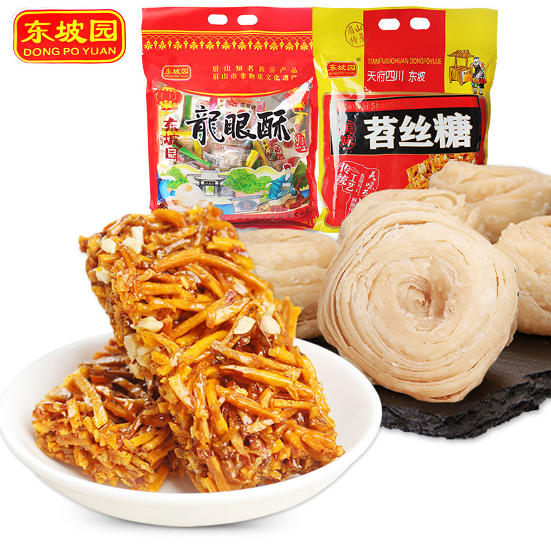 Sichuan Meishan specialty Dongpo Garden Longan crisp 538g A variety of flavors of pastries snacks snacks Open bag ready-to-eat