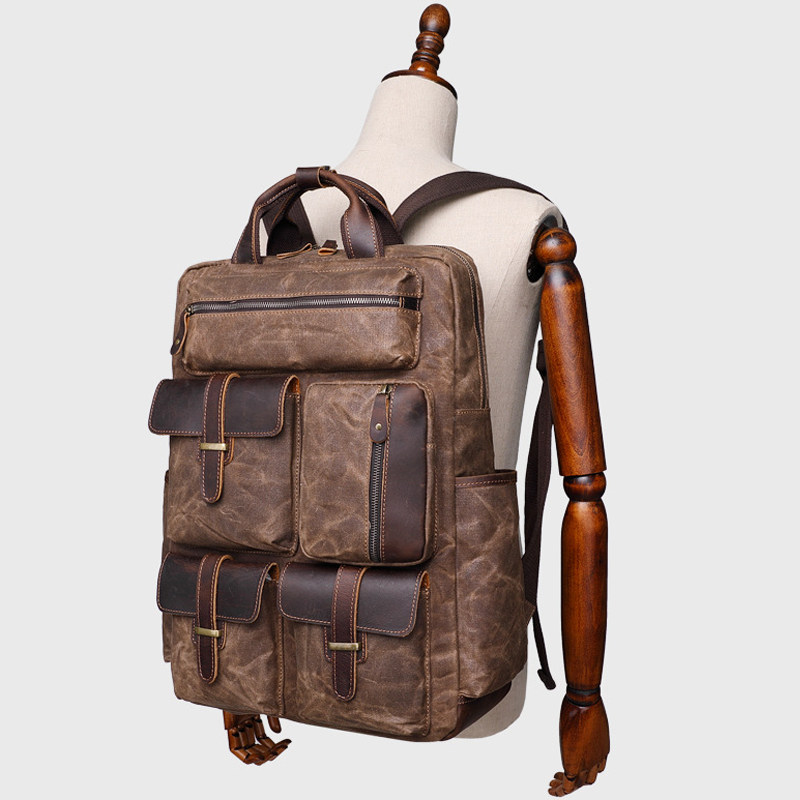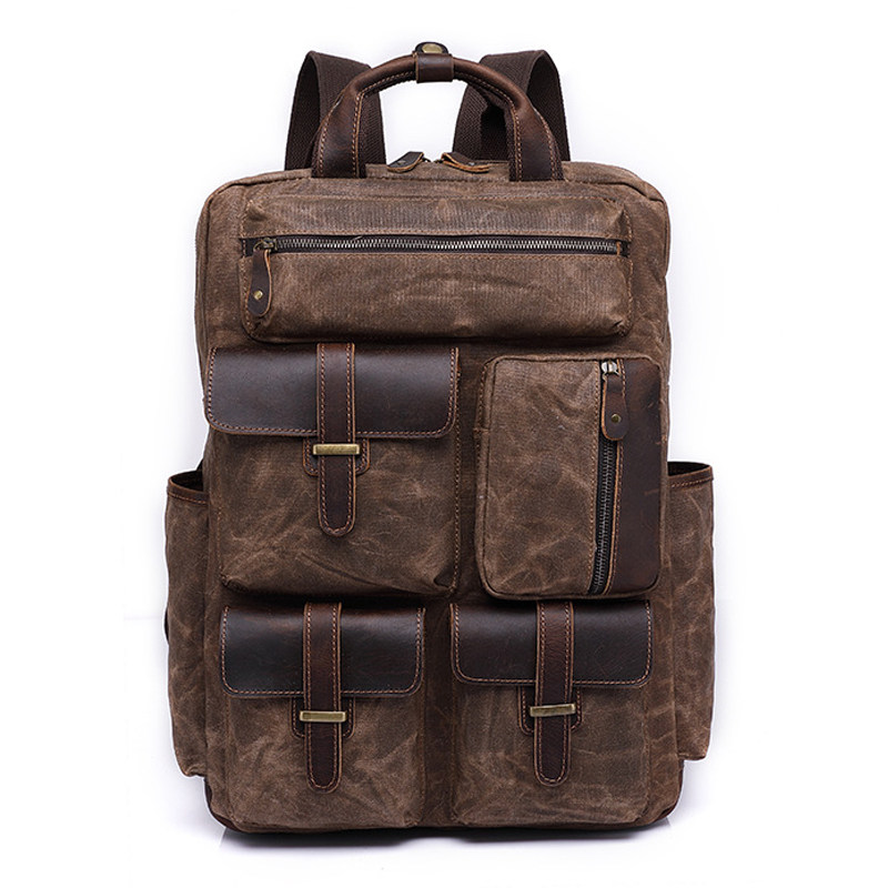 Chiguxi New Tide Men Multipocket Shoulder Pack Casual Computer Package Anti-fouling Wax Canvas Travel Backpack Male