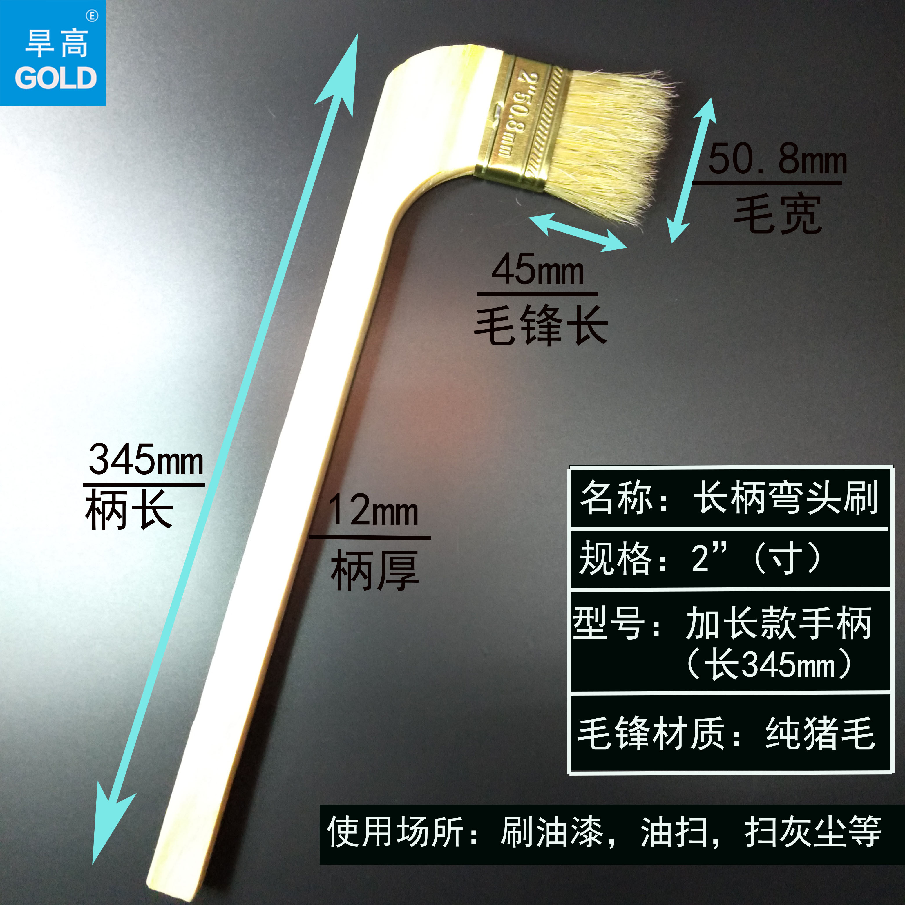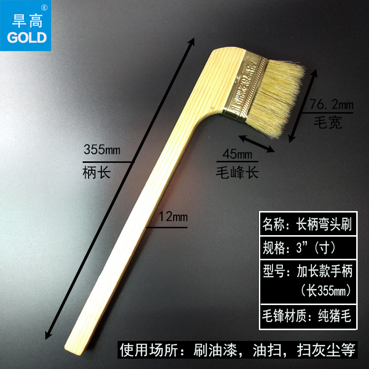 Long handle elbow brush curved handle brush oil sweep brush paint brush industrial marine machine tool mold sweep oil pure bristle brush