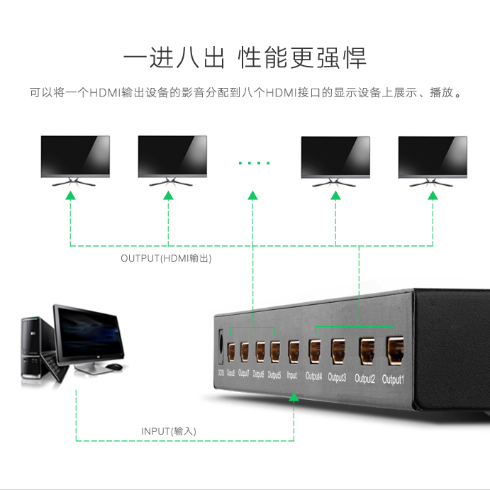 Green League hdmi high-definition dispenser 10%-8 computer pick up 4K display split-screen switcher 1-in 8-out divider